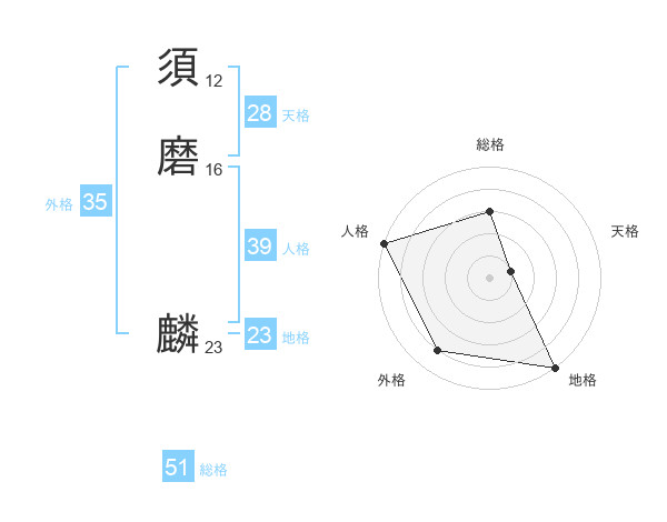 須磨 麟さんの総格は51画の3点!