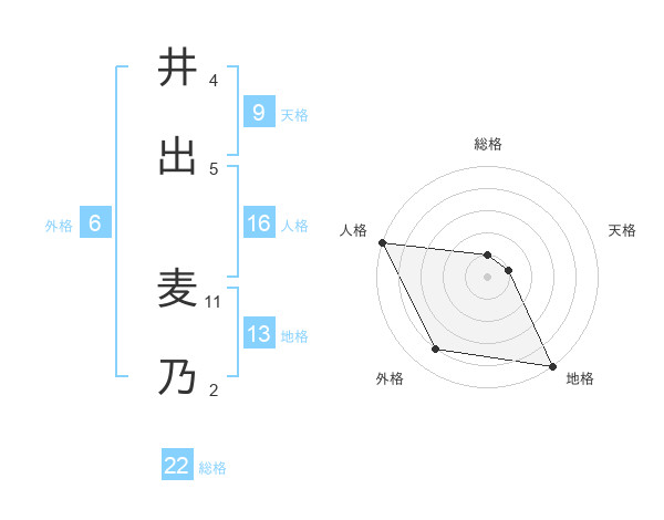 井出 麦乃さんを姓名の画数から五運を鑑定