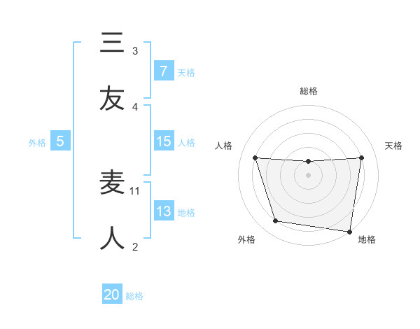 家系が持つ宿命的な運勢を表します。祖先から受け継いだ苗字ですので自分の力が及びません。家柄を象徴します。