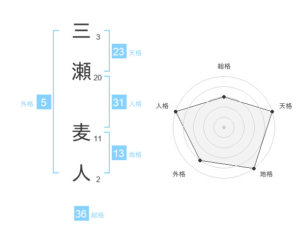 三瀬 麦人さんを姓名の画数から五運を鑑定