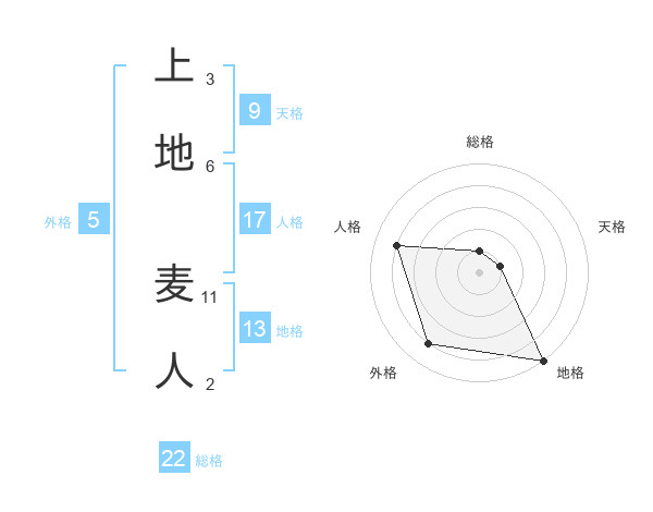 上地 麦人さんの総格は22画の1点!