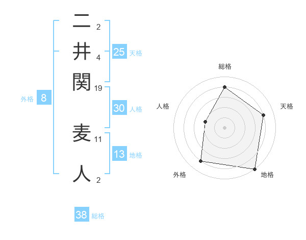 二井関 麦人さんを姓名の画数から五運を鑑定