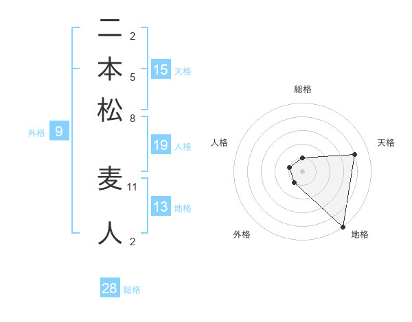 二本松 麦人さんの総格は28画の1点!
