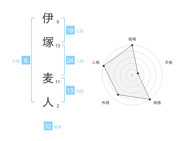 伊塚 麦人さんを姓名の画数から五運を鑑定