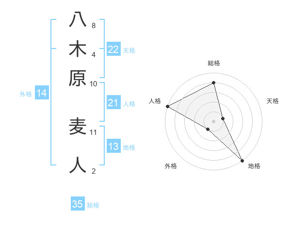 八木原 麦人さんの天格は22画の1点!