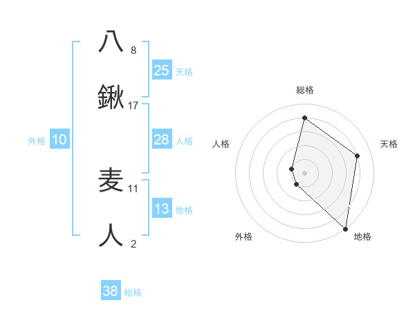 八鍬 麦人さんを姓名の画数から五運を鑑定