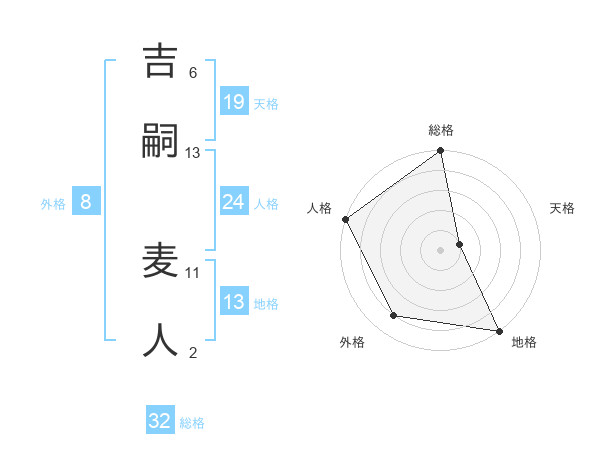 吉嗣 麦人さんの総格は32画の5点!