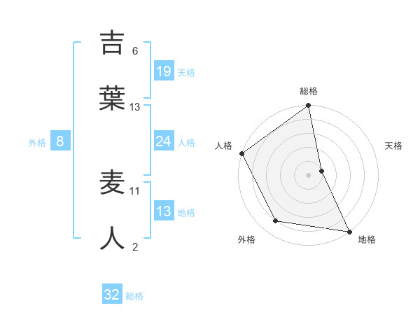 吉葉 麦人さんを姓名の画数から五運を鑑定