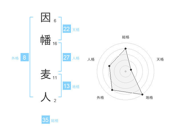 因幡 麦人さんの総格は35画の4点!
