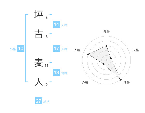 坪吉 麦人さんの総格は27画の3点!
