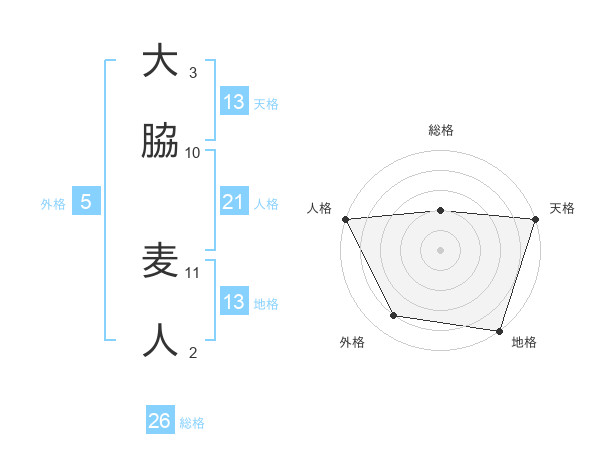 大脇 麦人さんを姓名の画数から五運を鑑定