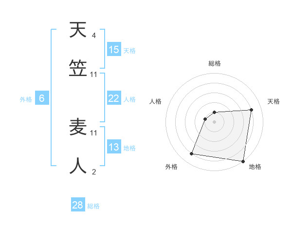 天笠 麦人さんの総格は28画の1点!
