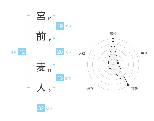 宮前 麦人さんの総格は32画の5点!
