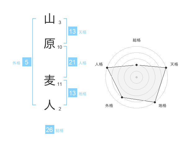 山原 麦人さんの天格は13画の5点!