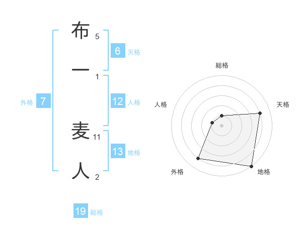 布一 麦人さんの総格は19画の1点!