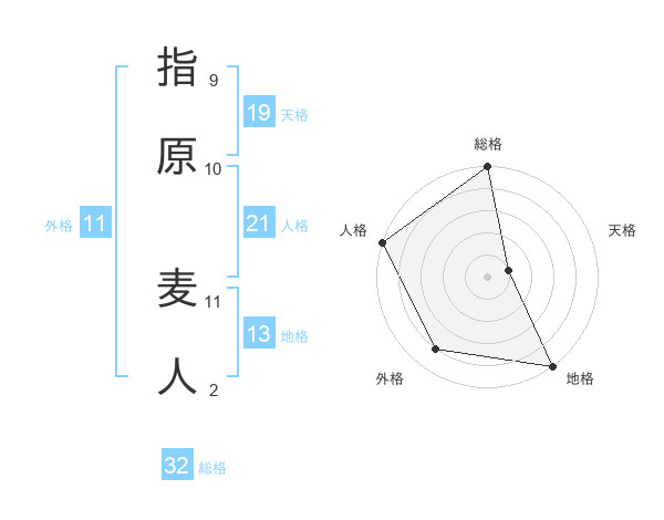 指原 麦人さんの総格は32画の5点!