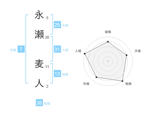 永瀬 麦人さんの総格は38画の4点!