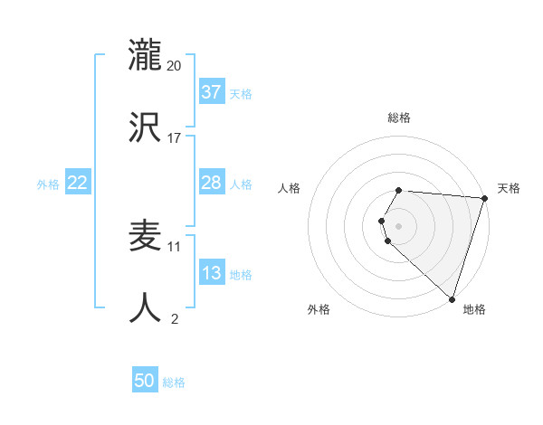 瀧沢 麦人さんを姓名の画数から五運を鑑定