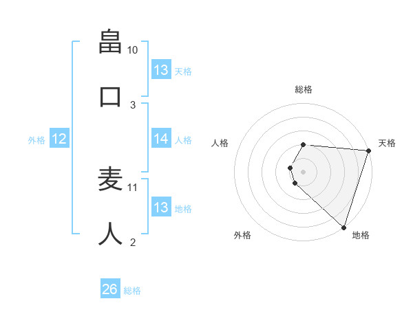 畠口 麦人さんの総格は26画の2点!