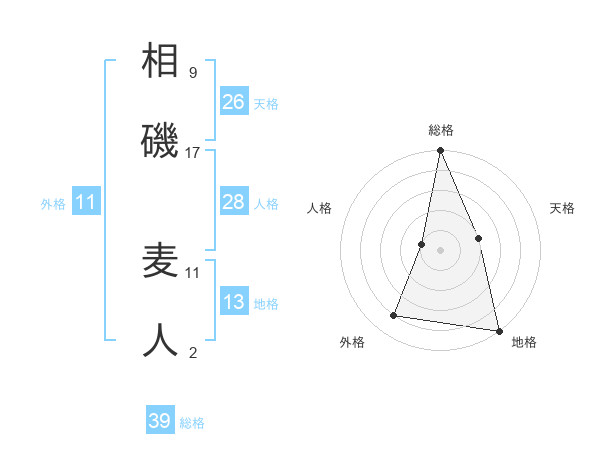 相磯 麦人さんの総格は39画の5点!