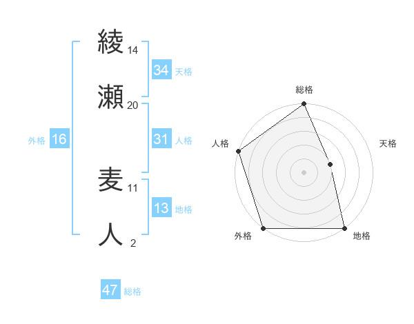 綾瀬 麦人さんの総格は47画の5点!