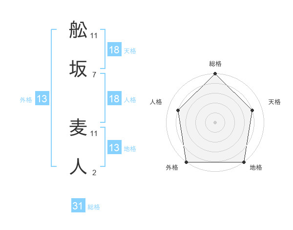 舩坂 麦人さんの総格は31画の5点!