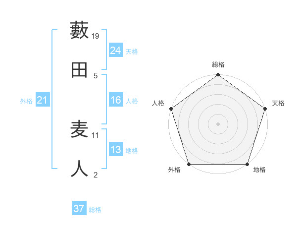 藪田 麦人さんの天格は24画の5点!