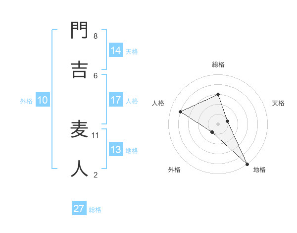 門吉 麦人さんの総格は27画の3点!