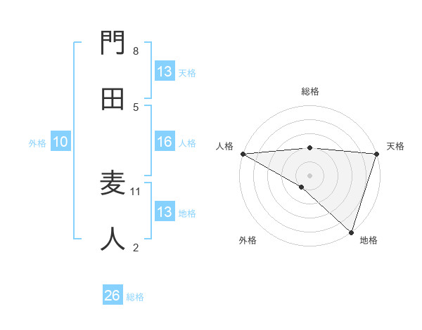 家系が持つ宿命的な運勢を表します。祖先から受け継いだ苗字ですので自分の力が及びません。家柄を象徴します。