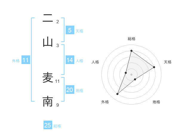 二山 麦南さんの天格は5画の4点!