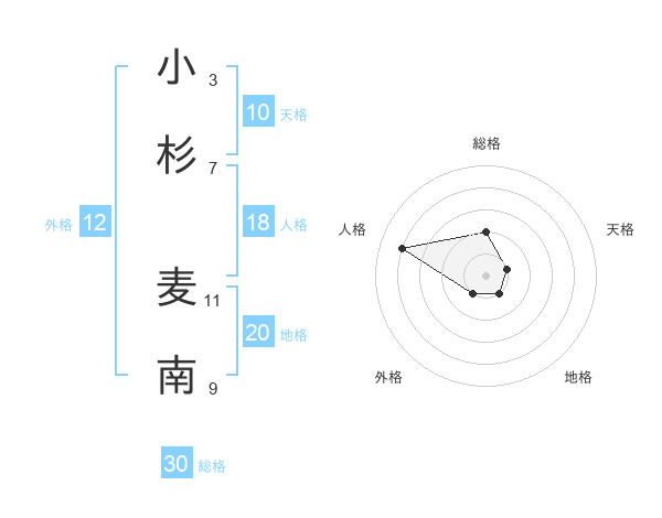 小杉 麦南さんの外格は12画の1点!