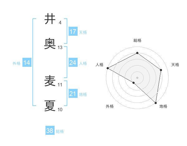 井奥 麦夏さんの総格は38画の4点!