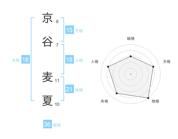 京谷 麦夏さんの天格は15画の4点!