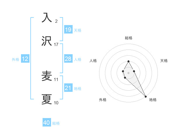 入沢 麦夏さんの総格は40画の2点!