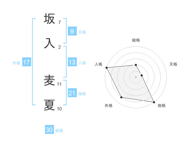 坂入 麦夏さんを姓名の画数から五運を鑑定