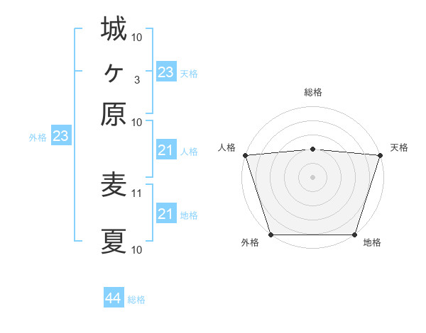 城ヶ原 麦夏さんの外格は23画の5点!