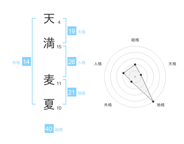 天満 麦夏さんを姓名の画数から五運を鑑定