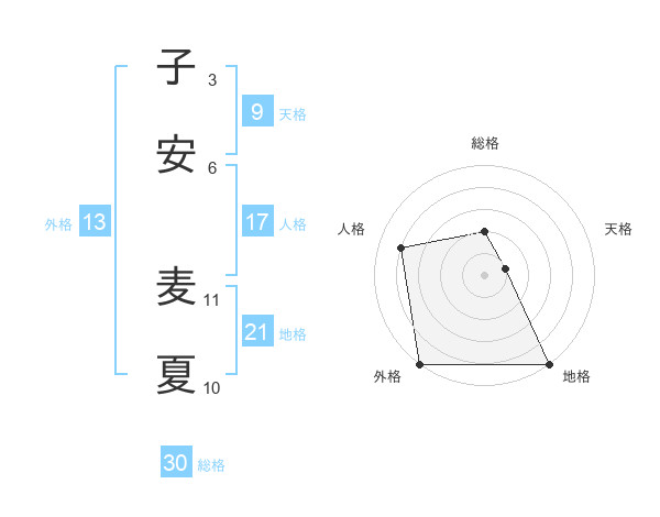 子安 麦夏さんを姓名の画数から五運を鑑定