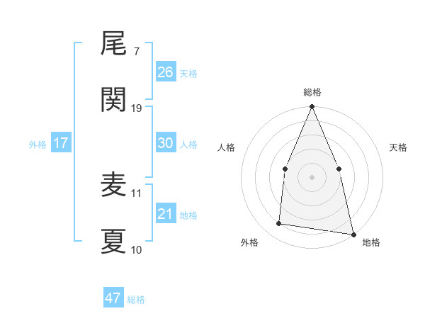 尾関 麦夏さんの総格は47画の5点!
