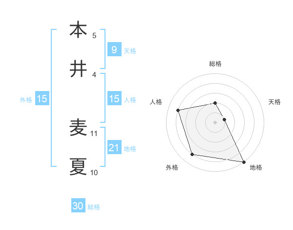 本井 麦夏さんの人格は15画の4点!