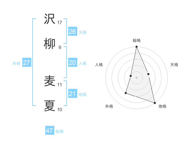 沢柳 麦夏さんを姓名の画数から五運を鑑定