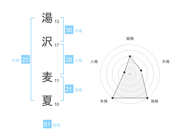 湯沢 麦夏さんの総格は51画の3点!