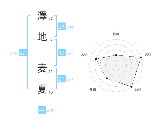 澤地 麦夏さんを姓名の画数から五運を鑑定