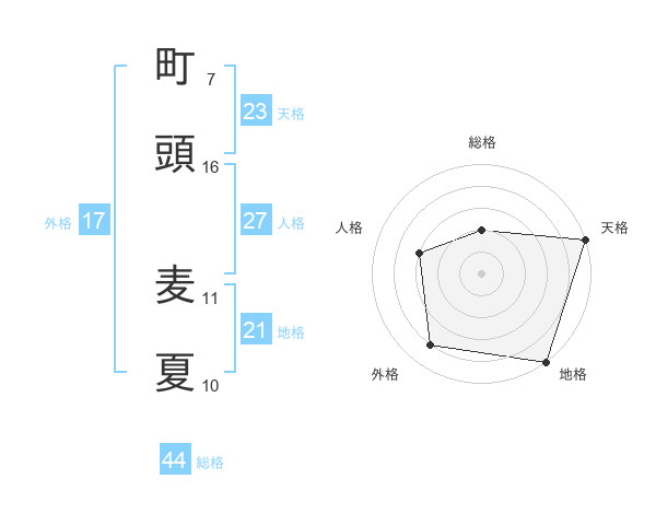 町頭 麦夏さんの天格は23画の5点!