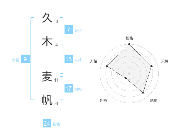 久木 麦帆さんの総格は24画の5点!