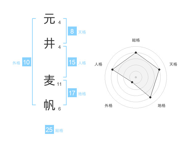 元井 麦帆さんの天格は8画の4点!