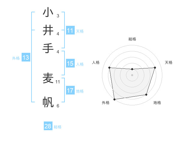 小井手 麦帆さんの総格は28画の1点!