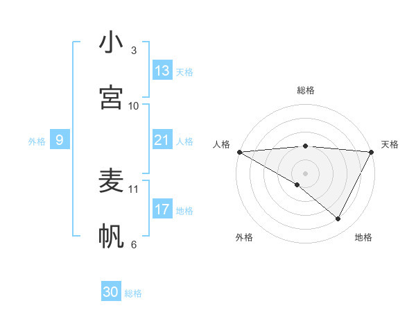 小宮 麦帆さんの総格は30画の2点!