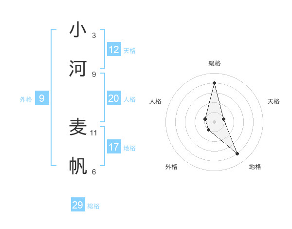 小河 麦帆さんの総格は29画の4点!