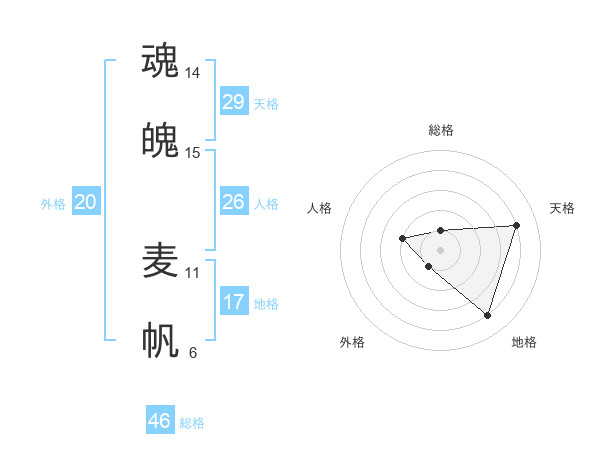 魂魄 麦帆さんの天格は29画の4点!